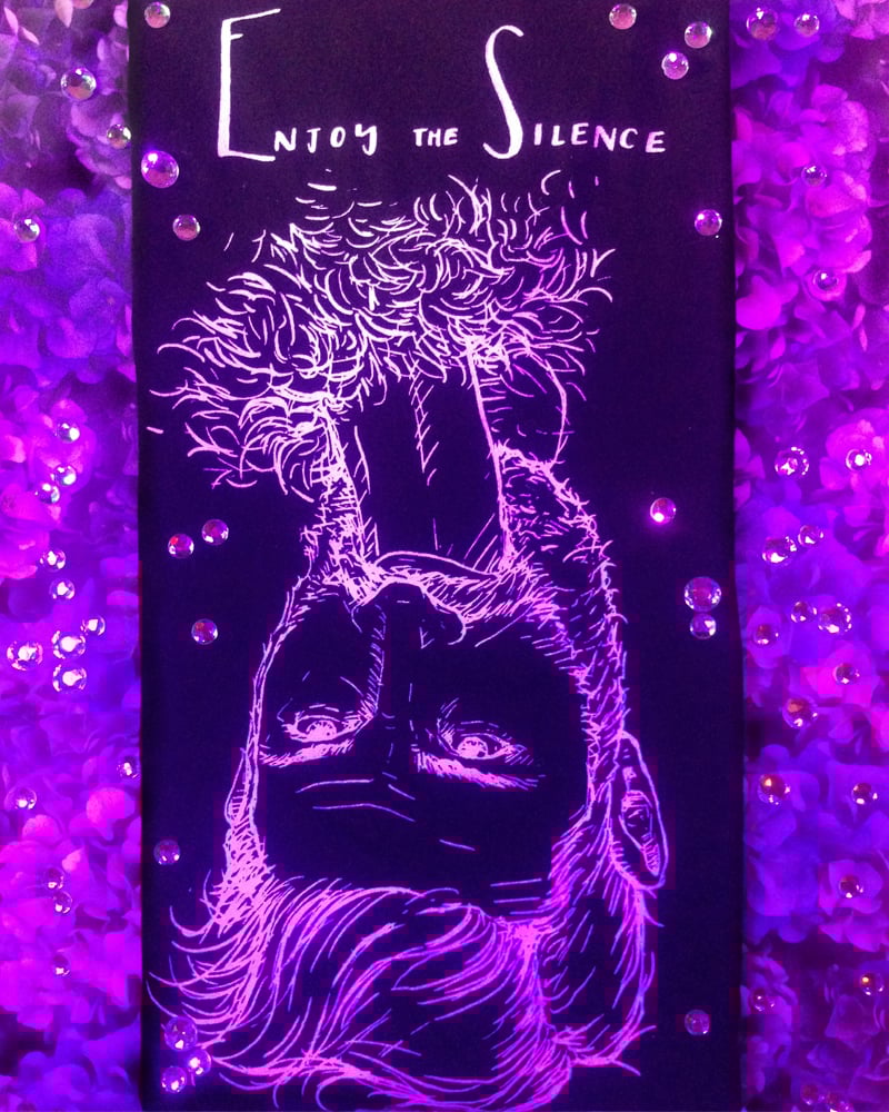 Cobalt ink on white 100% cotton Anvil lightweight tee.